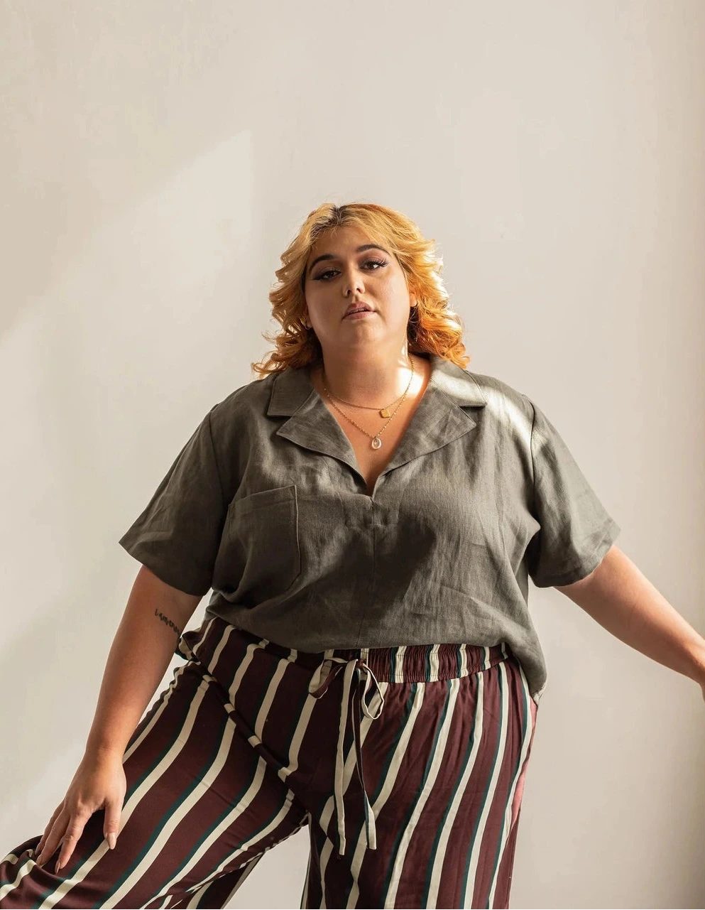 Fabric Inspirations: The Donny Shirt is designed for woven fabrics. Any sort of light to medium weight woven is suitable. If you choose a fabric like a mid-weight twill or denim you will get a more structured top. If you choose a drapier fabric like a rayon challis or silk, you will get a blousier top.