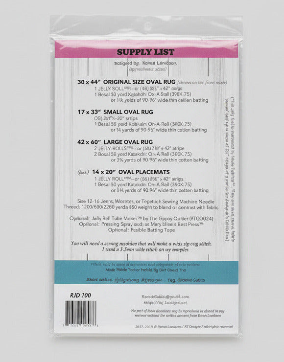 Create a colourful area rug using a Jelly-Roll (for example, Moda Fabrics Jelly Roll bundle which consists of 40-42 pieces of 2.5 x 42 strips) and 100% cotton batting.Our choice? Bosals Katahdin On-A-Roll (item: BO390K75 ). If you don't have a pre-made Jelly Roll bundle, you can also create your own strips.