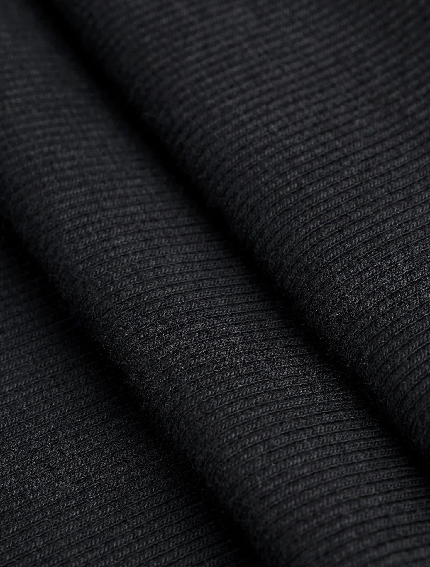 Meet your new wardrobe essential — this premium 2x1 tubular rib knit in classic black is the definition of versatility and comfort. Sourced from textile surplus from Rose Boreal, one of Canada’s leading eco-conscious sportswear brands, this rib is locally knitted with care and crafted to last.