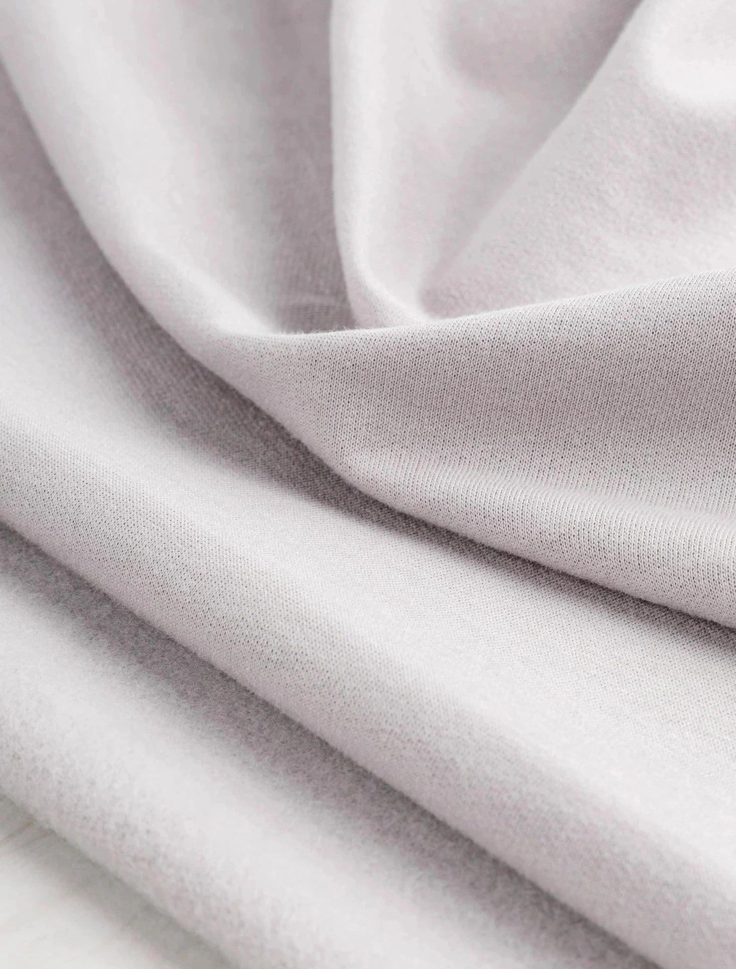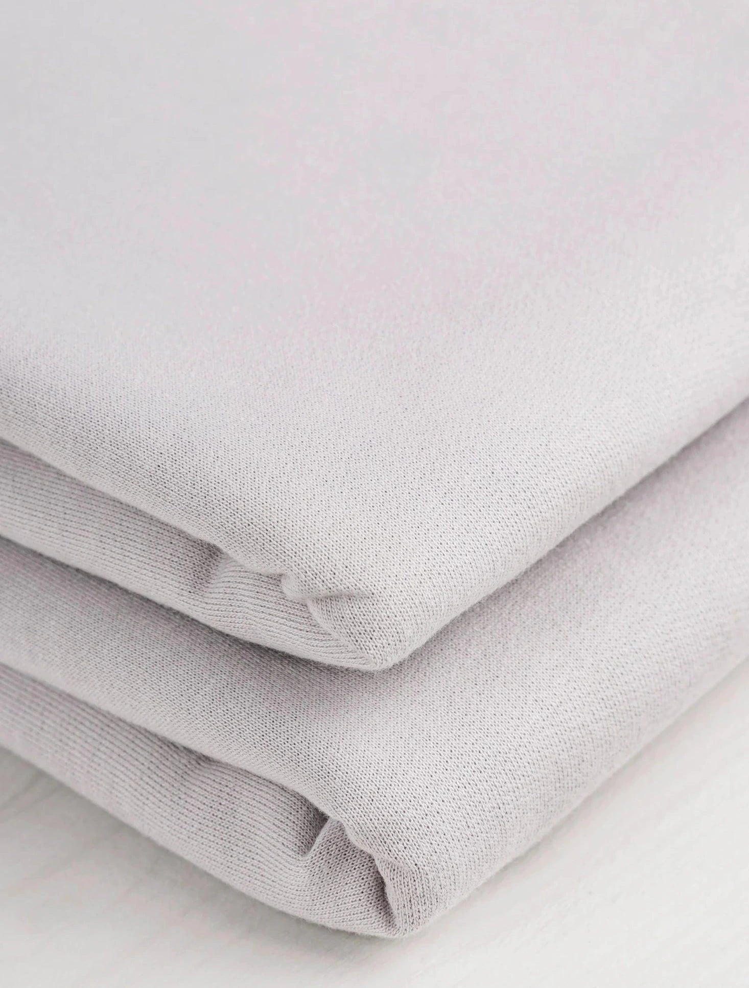 This midweight fleece features a smooth jersey face on one side and a plush brushed reverse on the other, creating that ideal mix of comfort and structure. It has a gentle crosswise stretch, sews beautifully, and gets even softer with every wash.