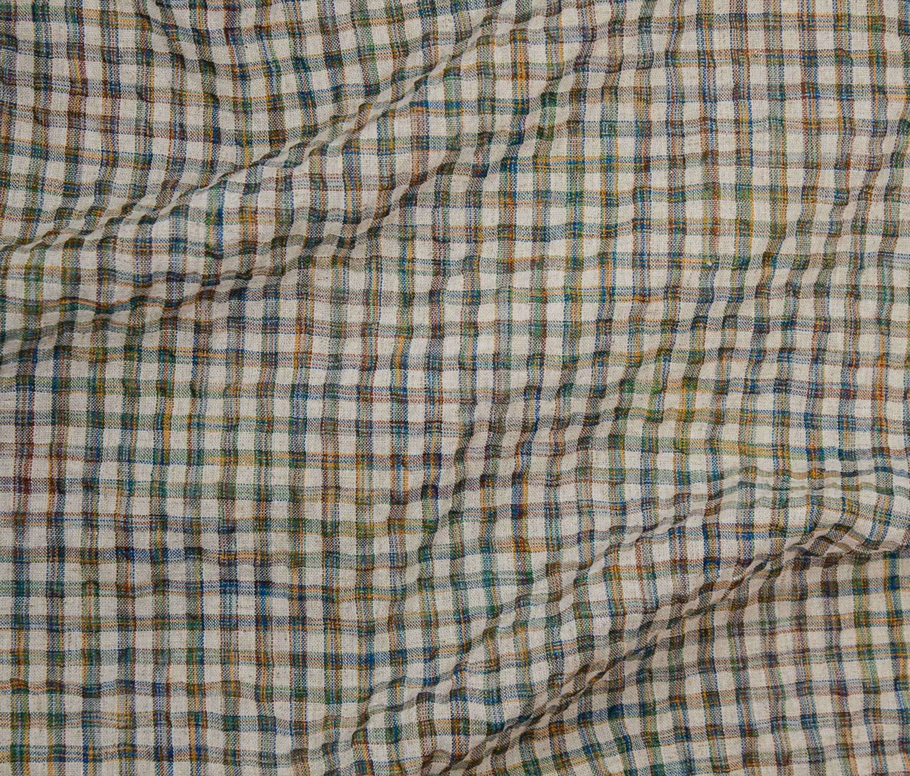 Painters Plaid Seersucker - Sage & Denim (Per ½ Meter)