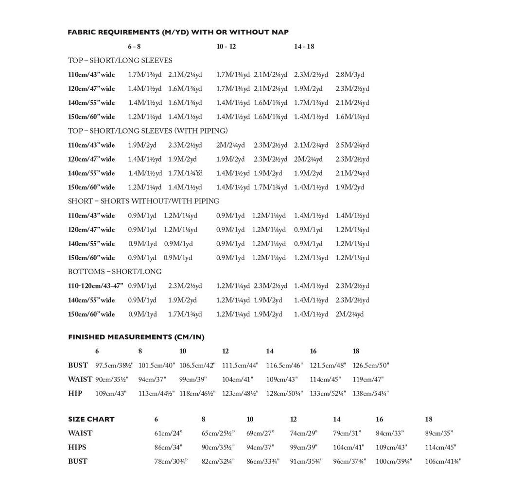 A traditional pair of pyjamas with either long or short sleeves and long, short or short - short bottoms. The top and short - short bottoms can be piped (optional).